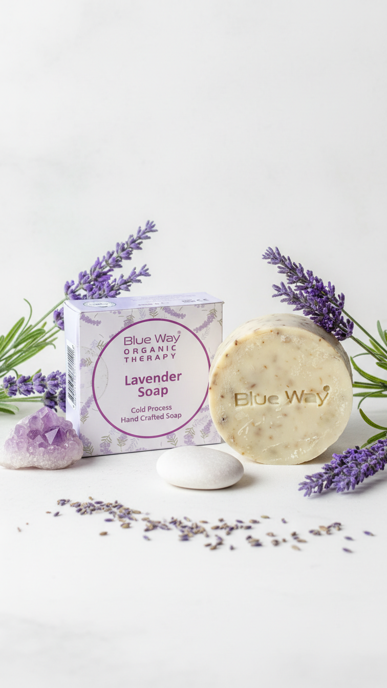 Blue Way Organik Terapi Lavanta sabunu, Lavanta yağı ve ve özleri ile özel olarak formüle edilmiştir. Hassas ve irrite ciltler için idealdir. Akne ve sivilce oluşumunu azaltmaya destek olur.