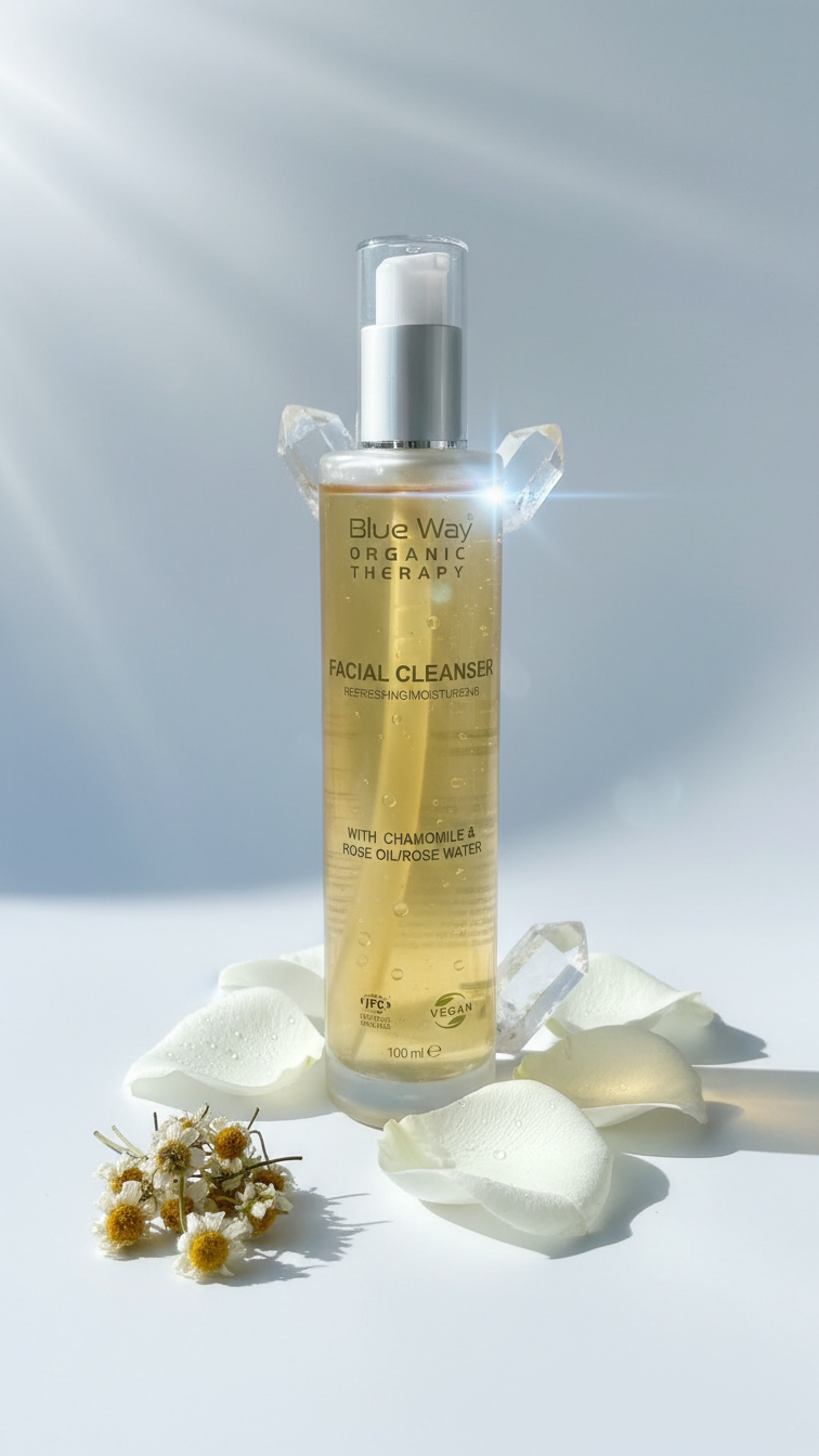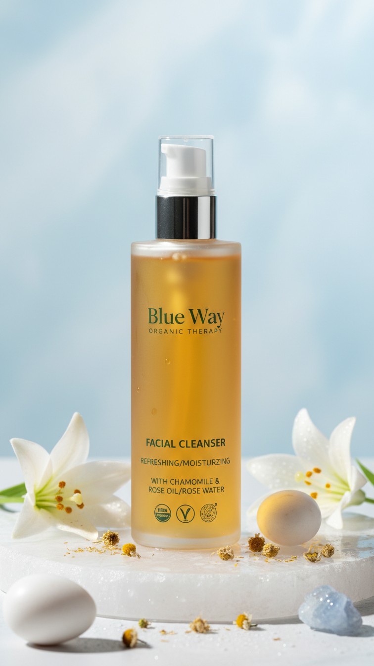 Blueway Organic Organik Papatya Özlü Yüz Temizleme Suyu, organik Papatya ,Aloe Ver ve Gül Mayası ile zenginleştirilmiş formülüyle cildinize nazikçe bakım yapar. Cildinizi temizlerken fazla yağı ve makyaj kalıntılarını giderir, cildinize taze ve ferah bir his verir. Cilt pH dengesini koruyarak cildinize nem sağlar ve rahatlatır. Hassas ciltler dahil tüm cilt tipleri için uygundur.