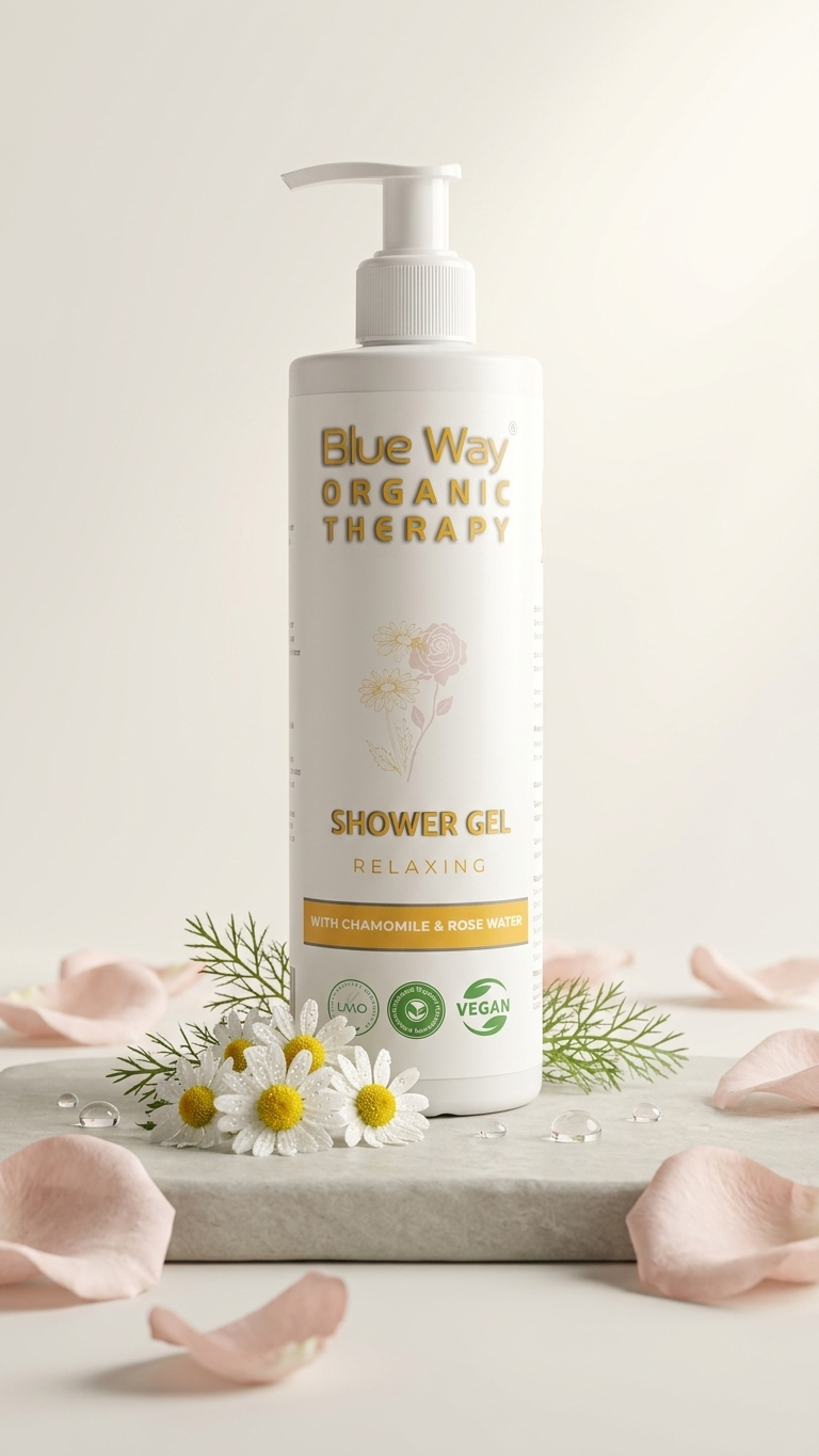 Blue Way Organic Therapy Rahatlatıcı Duş Jeli, organik papatya özündeki vitamin ve mineraller sayesinde cildi onarır, sakinleştirir ve dinginleştirir.
