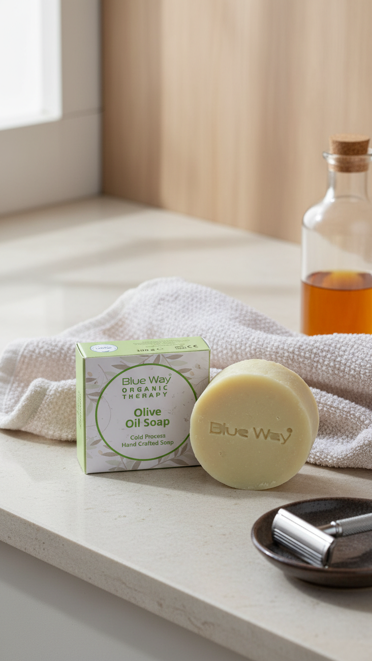 Blue Way Organik Terapi Zeytinyağ sabunu, Zeytinyağı ve doğal bitki özleri ile banyo için özel olarak formüle edilmiştir. Cildi derinlemesine nemlendirir.
